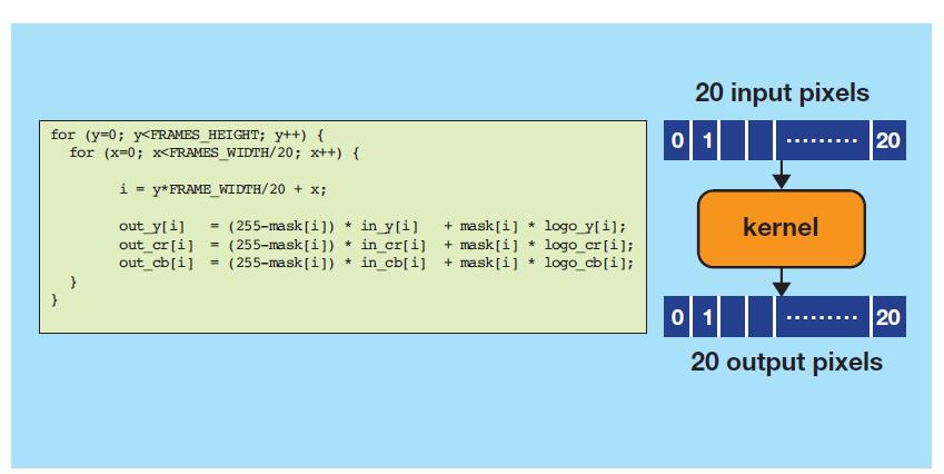 從圖4的代碼中可以看到,這種水印算法不是一種高計算強度的設計。大多數時間花在訪問內存,讀取和寫入視頻幀上。因此我們在優化實例設計時,把重點放在優化內存帶寬上。