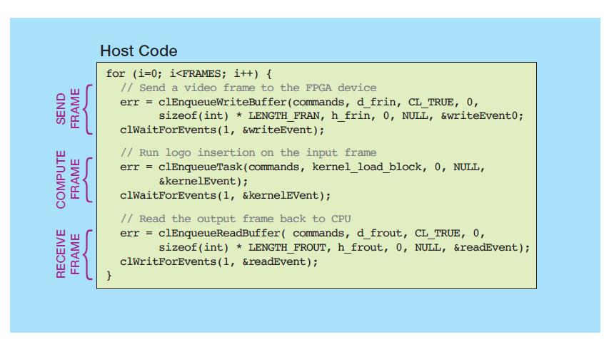 該代碼運行在主機處理器上,負責發送視頻幀到FPGA加速器卡,啟動加速器,然后從FPGA加速器卡取回處理后的幀。